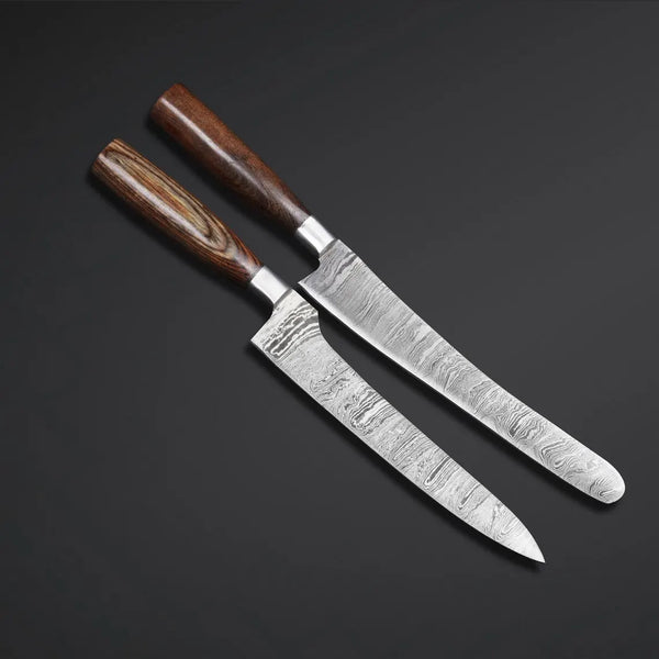Custom Handmade Damascus Steel 2 Pcs Chef Knives Set Handle Rosewood/Hardwood With Leather Roll Kit